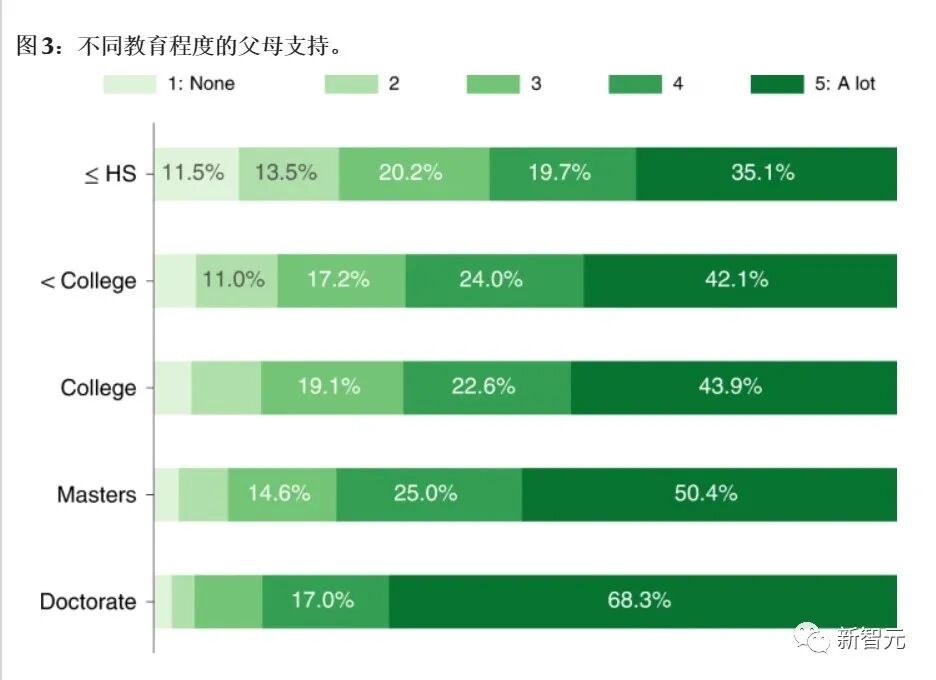 研究显示,如果父母拥有博士学位,子女就更有可能从父母那里获得对自己学术生涯的鼓励和支持。