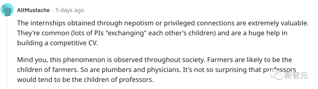 通过裙带关系或特权关系获得的实习非常有价值,而且这很常见(许多 PI「交换」彼此的孩子),对完善一份有竞争力的简历有很大的帮助。
