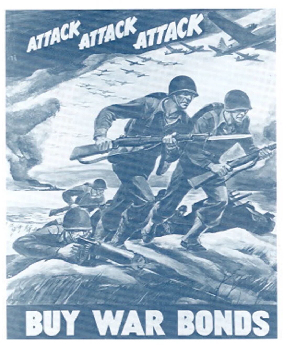 政府建立了新的官僚机构来推销新发行的战争债券。著名艺术家创作艺术作品以帮助说服普通市民放弃他们稀缺的资本。