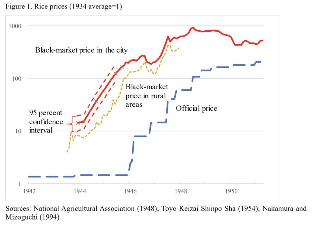 大米供应于1939年受政府控制,而消费品的定量配给则从1940年开始在地方上实行。到1942年,水稻、小麦、大麦和黑麦被政府垄断。尽管警察做出了努力,但黑市——或者我喜欢说的自由市场——仍在蓬勃发展,为各种消费食品的交换和销售提供了便利。(显然,“黑市”这个词有负面的含义,但你所做的一切都是为了养活你的家人。作为一名黑人,我对黑色不光彩的说法感到反感,因此重新命名。)