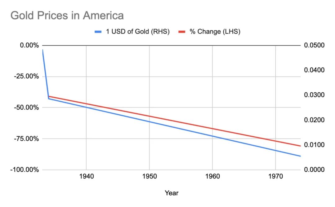 以前,许多人认为最好的办法是把钱存为黄金等“硬通货”。但政府(这里指的是美国)意识到了这一思路的普遍性,并希望利用它,因此禁止私人拥有黄金,并迫使黄金所有者以较低的价格将他们的金块出售给政府。