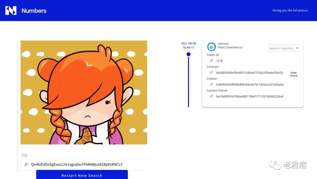 这个搜索引擎通过反向图像、CID、合约+token、关键字搜索等方式,不只是在区块链探索器上抓取NFT代币和反刍市场信息,而是提供专门的资产档案,详细说明全面的归属记录,包括NFT特征、创造者档案、完整性记录,甚至相关许可等等。