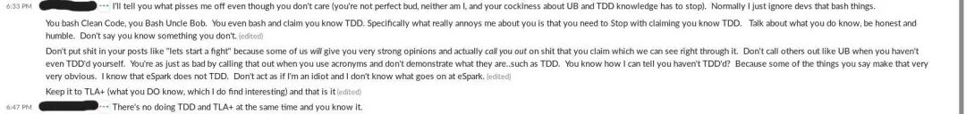 我认为,真正的极致主义者并不多,尽管我至少遇到过一个。大多数倡导者在某些方面是温和的,但在另一些方面却是偏激的——我当然也不例外!但是对于更广泛的 TDD 对话是什么样子的,极致主义者是一个很好的模型。尽管人们只是在口头上谈论诸如“使用合适的工具”“没有银弹”之类的东西,但是他们经常发表他们的极致主义的观点,而不分享他们的注意事项。极致主义思想,在整个学科中得到了广泛的传播。