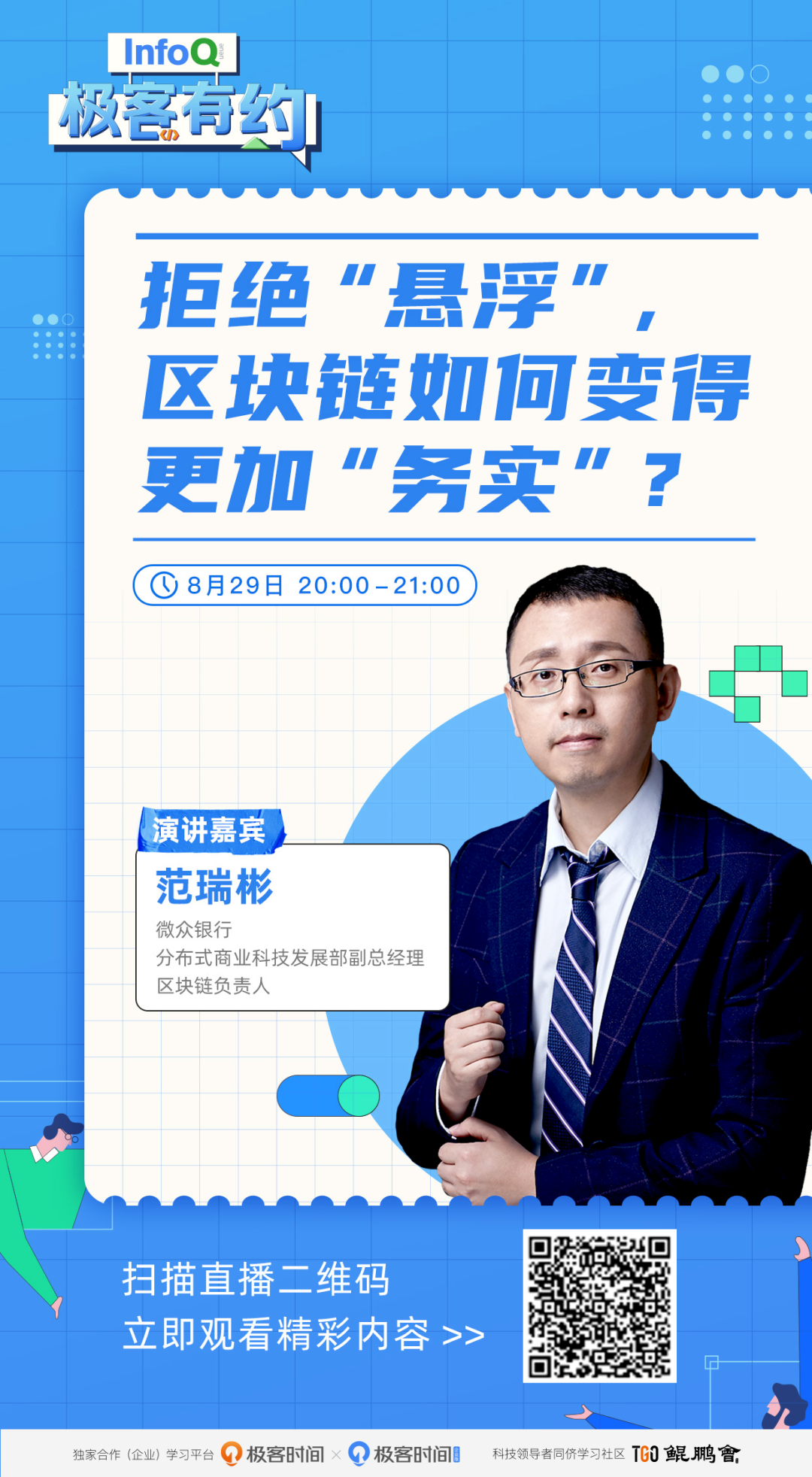 因此,8 月 29 日晚上八点,InfoQ 邀请到了微众银行分布式商业科技发展部副总经理、区块链负责人范瑞彬,一起聊一聊如今的区块链如何更加“务实”地发挥自己的作用。