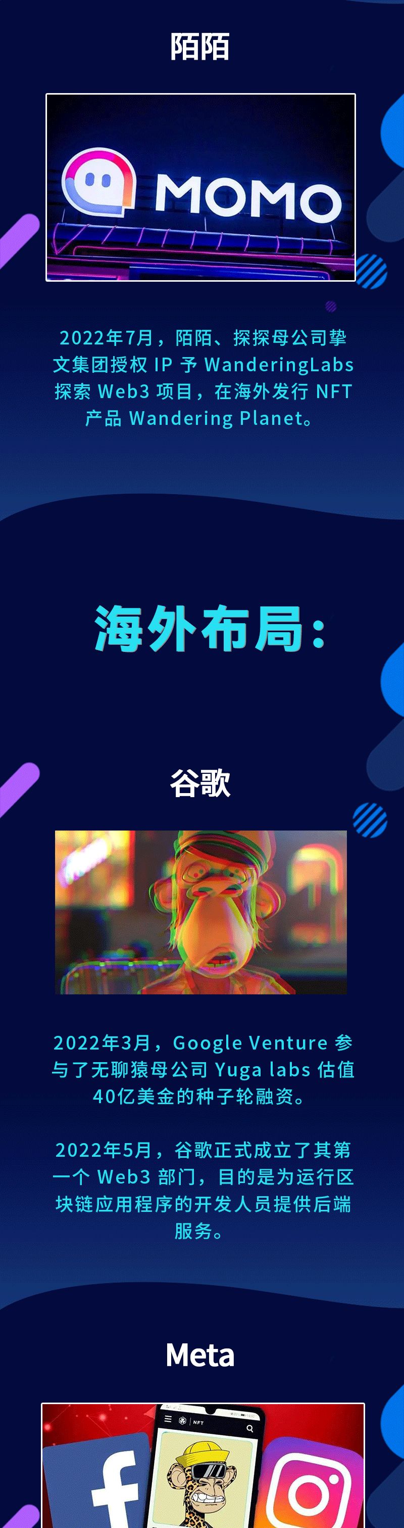 2022年7月,陌陌、探探的母公司挚文集团授权 IP 予 WanderingLabs 探索 Web3 项目,在海外发行 NFT 产品 Wandering Planet。