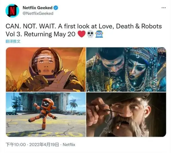 2022年5月,奈飞在新一季《爱、死亡和机器人》等影视作品中中加入NFT的使用乃至彩蛋。