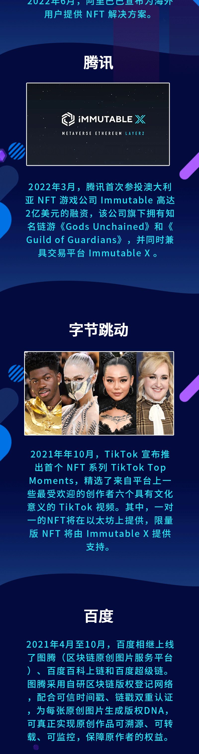 2022年3月,腾讯首次参投澳大利亚 NFT 游戏公司 Immutable 高达2亿美元的融资,该公司旗下拥有知名链游《Gods Unchained》和《Guild of Guardians》,并同时兼具交易平台 Immutable X 。