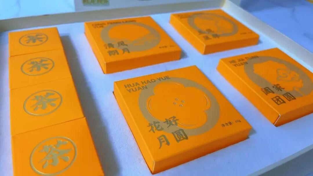 网元圣唐的礼盒不仅外包装有中秋、桂花等浓烈的国风元素,月饼设计得也非常出彩。
