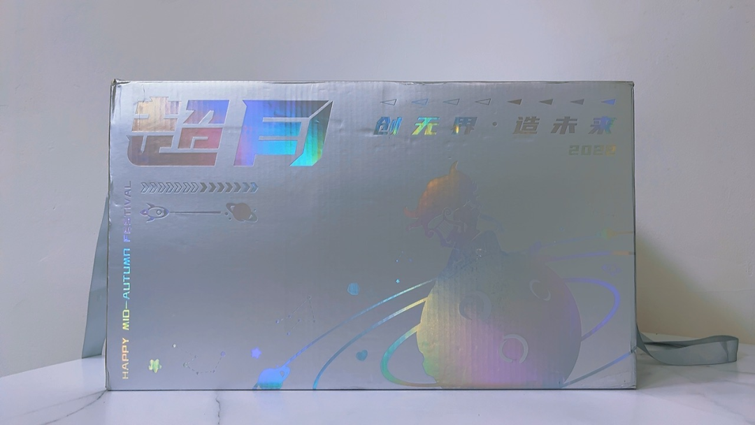 心动网络的中秋礼盒,这个包装一眼看去很有宇宙风的盲盒感呢!