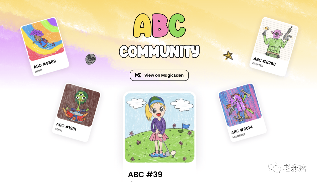 ABC NFT共有10000个,是一个在Solana上的NFT系列。发布者说,这个系列是为了提醒你,在我们长大之前,当个孩子是多么有趣的事情,让我们永远不要停止玩耍!