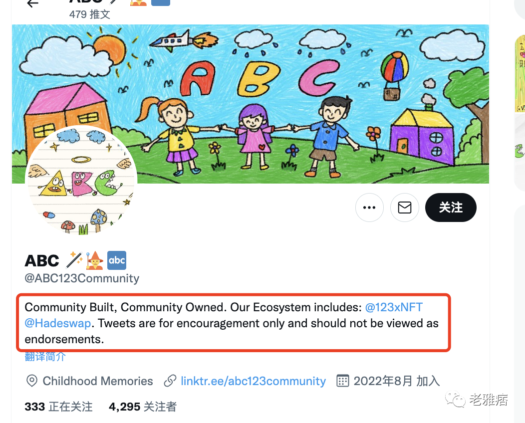 在ABC NFT暴涨后,也并没有保持之前的“没事儿别瞎买”风,再其相关推特的签名栏中就改成了“Community Built”,并且提到了其未来的生态系统: