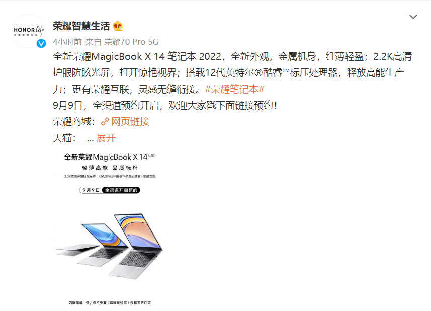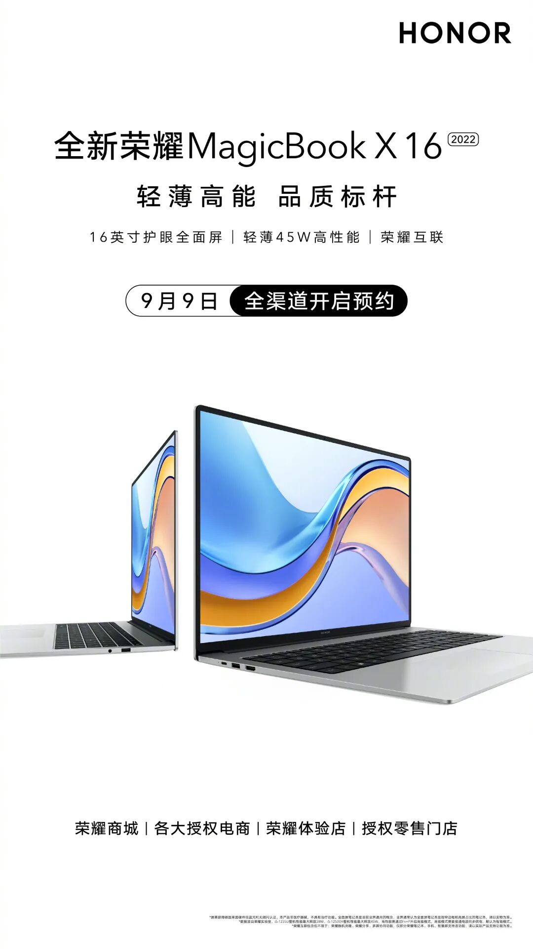 新款荣耀 MagicBook X 14/16 2022 笔记本开启预约,9月15日发布