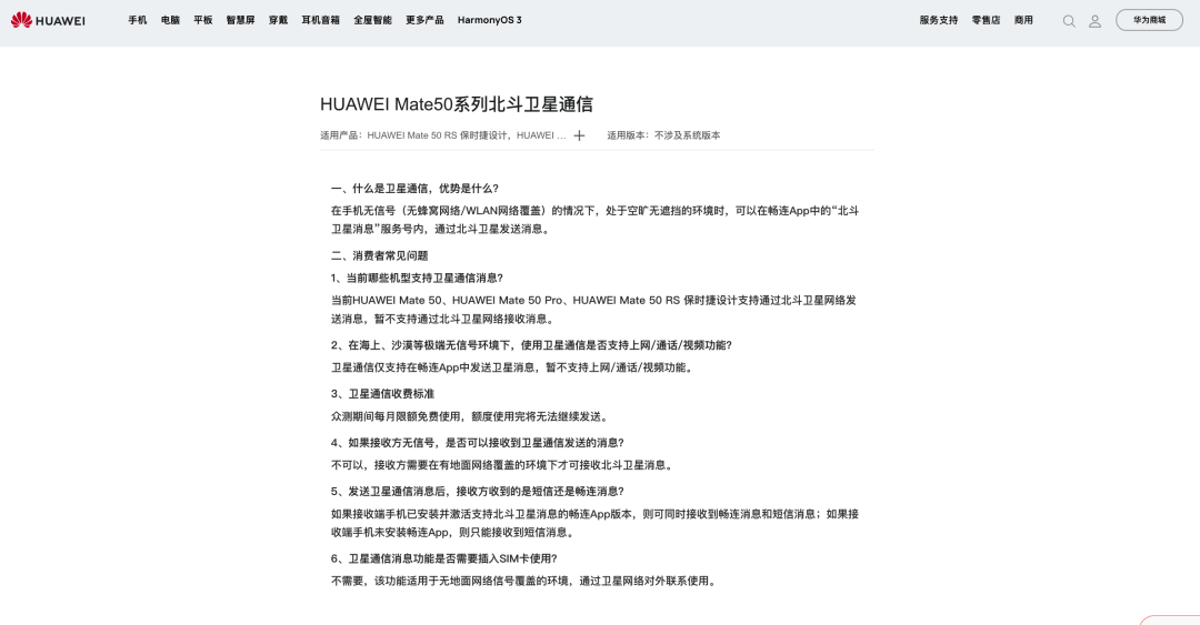 华为Mate50卫星通信功能细节公布,其他机型或有望支持
