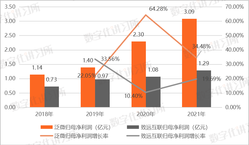 图2:2018年-2021年泛微和致远互联归母净利润情况