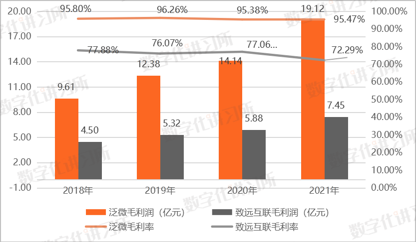 图6:2018年-2021年泛微和致远互联毛利润和毛利率情况