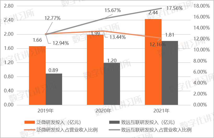 图9:2019年-2021年泛微和致远互联研发投入情况