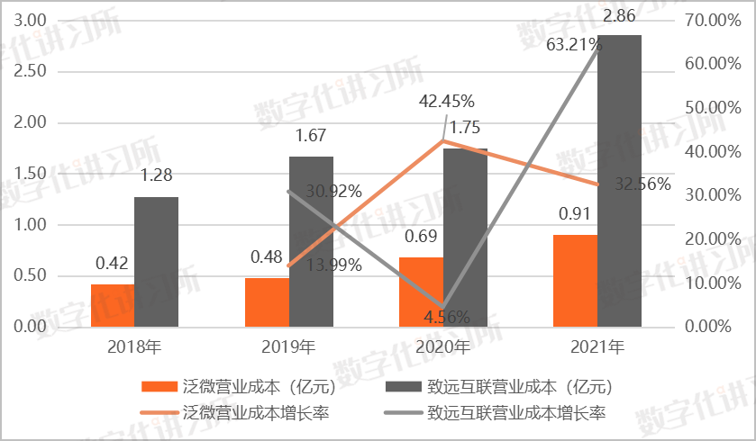 图5:2018年-2021年泛微和致远互联营业成本情况