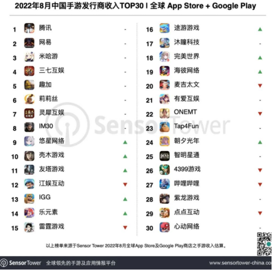 Xbox游戏工作室负责人Matt Booty在PAX West 2022的访谈问答环节中,提到了“由单个工作室开发大型游戏的日子已经不复存在”的话题。他认为疫情虽然也会影响游戏开发,但现代游戏在这方面还需要面对适应新硬件的困难、对更复杂的游戏进行QA测试、需要由多个工作室合力完成等挑战。——微软表示,在动视与索尼的协议结束后,《使命召唤》将在PlayStation上保留3年。要知道《使命召唤》在PlayStation上发行了将近20年,他们的提议在许多层面上都是不够有诚意的。微软Xbox游戏机业务负责人斯宾塞承诺,即便公司收购知名游戏开发商动视暴雪的交易获批,《使命召唤》系列游戏仍会在索尼PlayStation游戏机上存在“数年”时间。而索尼PlayStation CEO Jim Ryan在接受外媒采访时表示该提议“在许多层面上都不够充分 ”。他指出,微软提出未来的《使命召唤》游戏继续登陆PS主机是有时间限制的。——可爱艺术的优势在于,它允许我们在游戏内容中加入一些“可怕”的东西,而不会让玩家觉得难以接受。【1】近期,游戏陀螺汇总了76家上市游戏公司财报,并从游戏营收及净利润方面进行了剖析。从“成绩单”上看,上半年76家上市游戏公司中有34家游戏营收同比增长,占比45%;净利润同比下滑过半,最高下滑幅度达到617.21%。出海方面,28家游戏公司透露海外收入,超6成营收下滑,仅8家收入破5亿元。【2】9月6日,索尼集团官方发布公告,宣布索尼互动娱乐(SIE)董事兼副社长伊藤雅康因年事已高而将在10月1日退休,接替其担任SIE董事兼副社长的是陶琳,同时作为SIE日本·亚洲合作伙伴发展与关系部部长的浦田树一郎将成为新董事。【3】CD Projekt近日公布了最新财报。财报显示,由于《赛博朋克2077》市场表现出色、整体成本下降,CDPR今年上半年的净利润达到1.137亿波兰兹罗提(约合2398万美元),同比增长8%。,不过3.779亿兹罗提的半年营收比去年同期下降了20%。CDPR首席财务官Piotr Nielubowicz表示,2022年上半年公司的大部分收入来源于《赛博朋克2077》的PS5和Xbox One Series X/S版本。【4】9月7日,三七互娱旗下研发品牌三七游戏北京分部“星海工作室”正式成立。“星海工作室”是继苏州的“萤火工作室”后,三七游戏成立的第二个独立工作室,也是三七游戏首个专注于SLG领域的工作室。据了解,“星海工作室”的核心团队成员在SLG品类上深耕多年,曾参与《阿瓦隆之王》、《火枪纪元》等多个全球化SLG精品项目的制作,有着丰富的SLG研发经验。【5】9月8日凌晨,2022苹果秋季发布会正式落下了帷幕。苹果发布了Apple Watch S8、AirPods Pro 2和iPhone 14三个系列6大产品。iPhone 14起售价为799美元(5999元人民币),较去年iPhone 13的价格高了100美元,于9月16日正式发售;iPhone 14 Plus起售价为899美元(6999元人民币),于10月7日正式发售。其中iPhone 14 Pro系列采用“药丸屏”的新设计,颇受关注。【6】9月9日,Sensor Tower发布“2022年8月中国手游发行商全球收入排行榜”,8月份共40个中国厂商入围全球手游发行商收入榜TOP100,合计吸金超过20亿美元,占全球TOP100手游发行商收入38.1%。除了榜单上的30家厂商外,入围全球收入TOP100的中国发行商还有禅游科技、波克城市、掌趣科技、自意网络、KOMOE Game、雅乐科技、鹰角网络、友谊时光、星合互娱和Mattel163。【7】9月4日,由中宣部版权管理局指导,国家版权交易中心联席会议等主办的2021十大年度国家IP评选活动获奖名单正式公布。综合专家评审意见与网络投票排名,最终评选出2021十大年度国家IP,以及文学、影视、文博等十六个赛道大奖,以及微博人气奖、潜力新声奖等特别单项奖。其中游戏赛道的获奖IP前三名分别为《原神》《和平精英》《崩坏3》。【8】9月7日,伽马数据发布了《2021-2022上海游戏出版产业报告》和《2022上海电子竞技产业发展评估报告》,报告显示,2022年上半年上海网络游戏总销售收入627.9亿元。按2022年上半年中国游戏市场实际销售收入1477.89亿元计算,上海网络游戏收入占国内收入约42%,占比将近一半。在2021年,上海网络游戏总销售收入达到1250.3亿元,其中国内部分为1000.4亿元。【1】日前,莉莉丝首款“三消+”游戏《BoraBora》在海外多地开测,该游戏是一款融合力模拟经营玩法的三消游戏,整体风格偏向欧美卡通画风,由莉莉丝全球化的游戏发行品牌Farlight Games负责发行。据悉,《BoraBora》开发团队原属完美世界,去年底被被莉莉丝以2000万收购,公司核心成员吴凡凡曾经是腾讯的四大金牌制作人之一,曾负责开发过《御龙在天》《天天爱消除》等现象级产品。