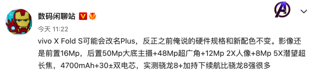 vivo X Fold+再曝,跑分、规格参数更多细节内容