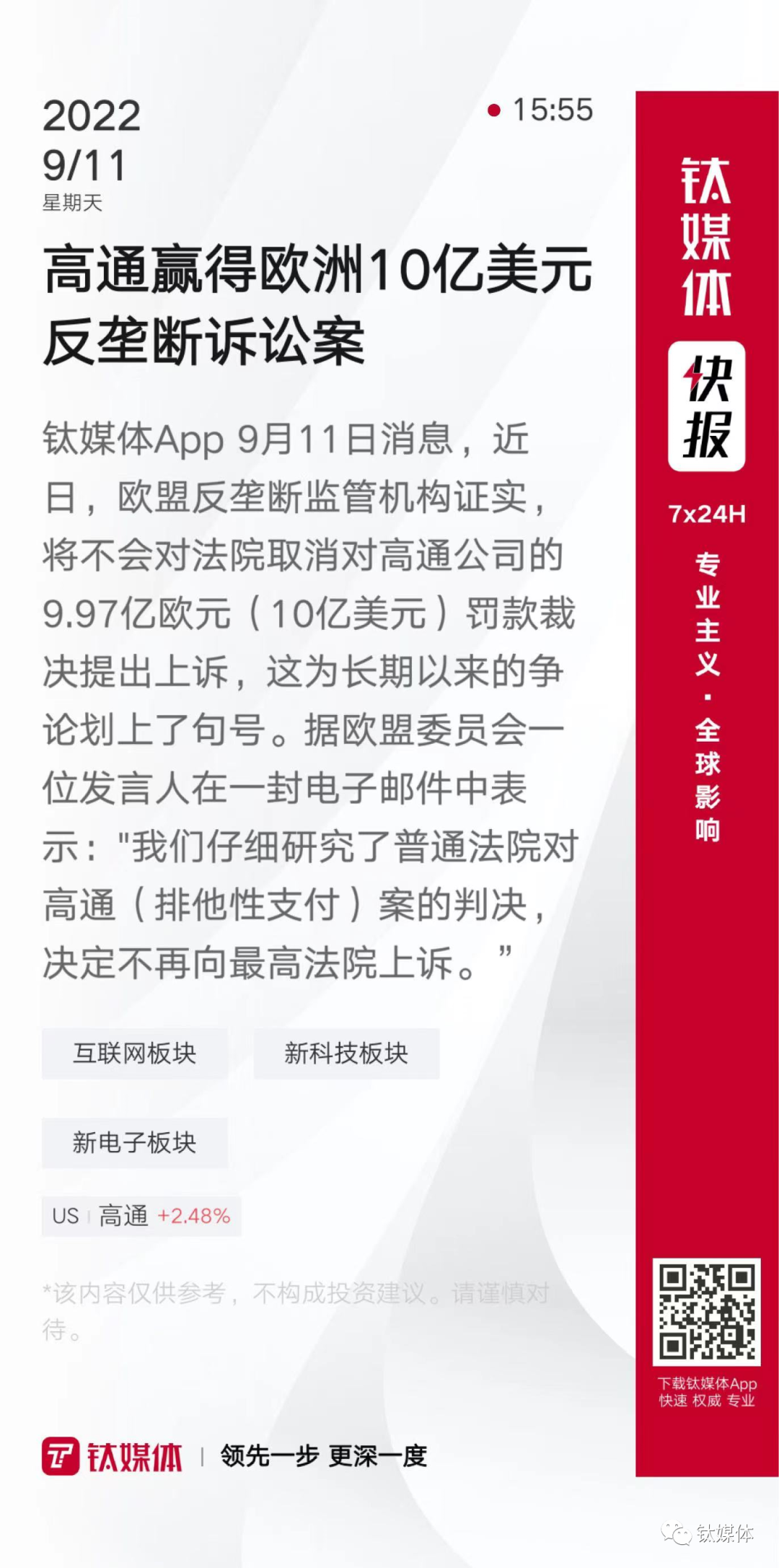 【高通赢得欧洲10亿美元反垄断诉讼案】