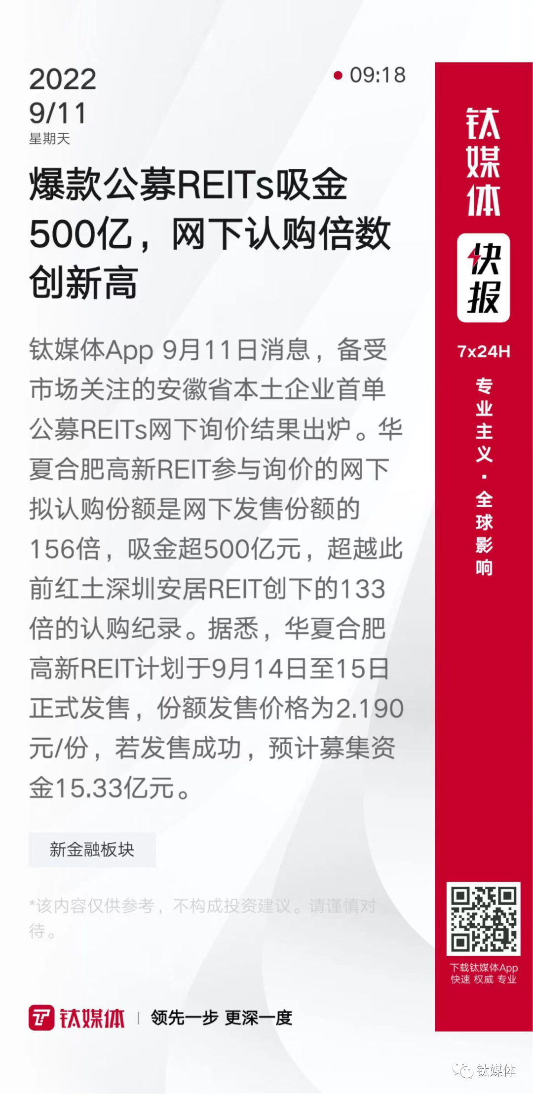 【爆款公募REITs吸金500亿,网下认购倍数创新高】