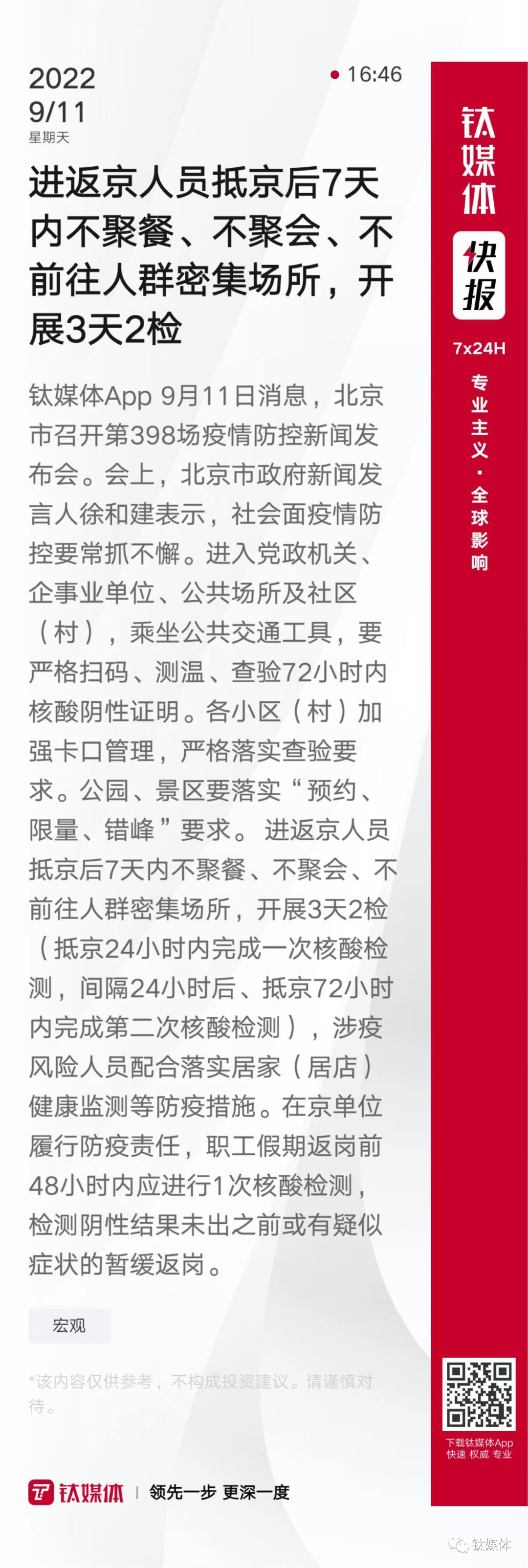 【进返京人员抵京后7天内不聚餐、不聚会、不前往人群密集场所,开展3天2检】