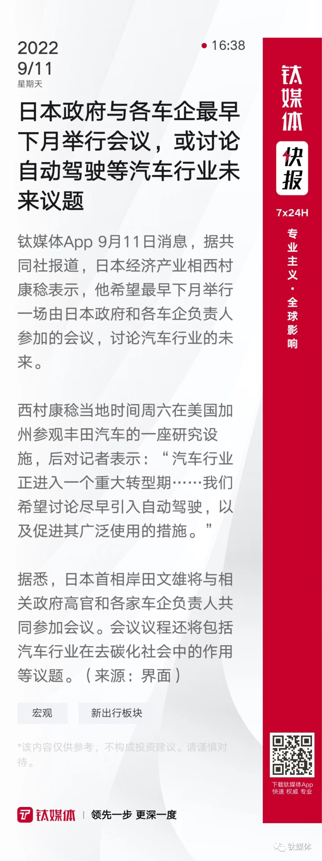 【日本政府与各车企最早下月举行会议,或讨论自动驾驶等汽车行业未来议题】
