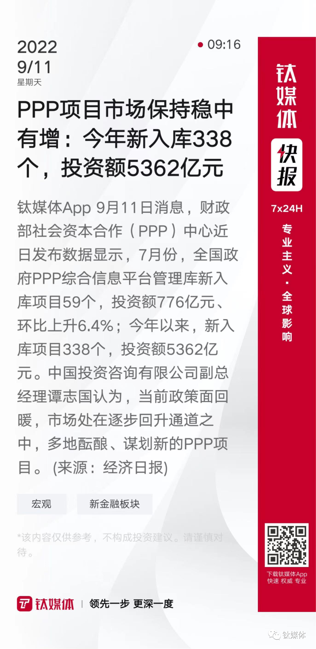 【PPP项目市场保持稳中有增:今年新入库338个,投资额5362亿元】