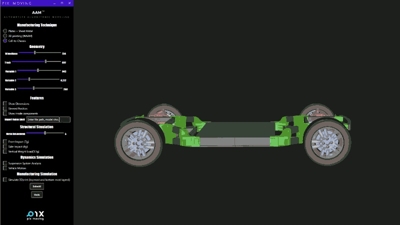 曹雨腾:从设计层面出发,PIX 基于大量的设计数据、针对底盘研发了算法引擎——AAM算法模型,实现底盘设计参数化,未来甚至会做整车的算法模型。根据参数化设计和深层次设计的理念,通过在模型中输入约束的参数,在一定边界之内能够自动生成相应的设计结果,同时标定仿真,对数字文件分析选取最优结果,使整个设计周期的工作量大幅降低。