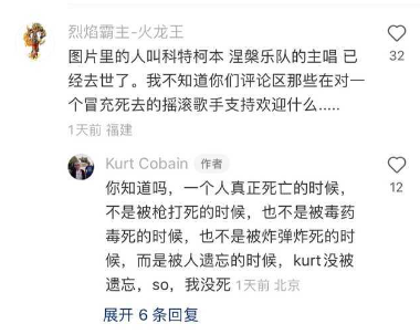 某种程度上,这位“柯本”老哥说的没错,我们对于一位公众人物的共同记忆,让其能够在大众的记忆中“永生”,只要涅槃的歌还在传唱,柯本就会不断在听众的心中“复活”,这样的事并不少见,虽然不至于像这次的“柯本”一样离谱,但每当有个著名人物死去,相关的事情,就一定会流传于互联网的某个角落。