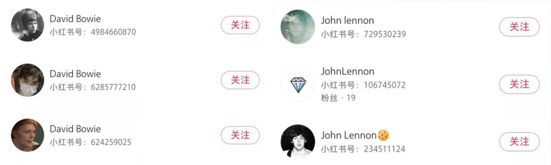 用同样的逻辑去搜索,你还能看到无数个“大卫·鲍伊”和“约翰·列侬”。