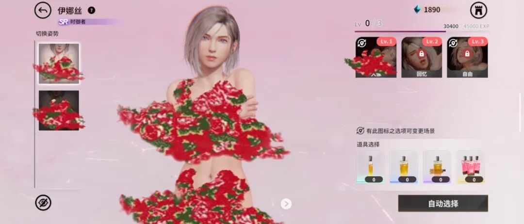 另一个则是游戏专属的“蜜室”功能,在这里根据好感度可以解锁角色的姿势以及专属动画。就拿这个酷似耶路撒冷的女一号"伊娜丝"来说,其初始的姿势就是裸体的态下双手抱胸表情冷漠,不给看,而下方锁着的新姿势透过阴影不难看出就不存在这个问题。
