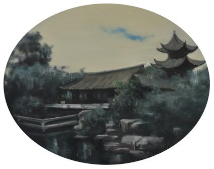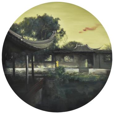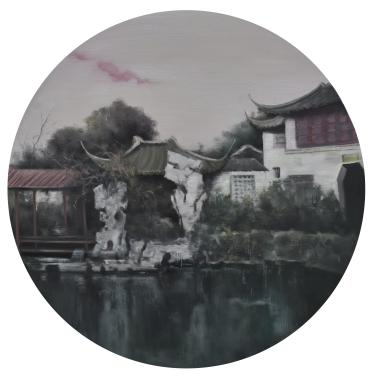 在被江南园林那份诗情画意触动后,我开始创作更为安静的主题——“游走园林”系列。游走于园林之间,方知何谓“所至得其妙,心知口难言”。江南的亭台阁榭、叠石疏泉、粉墙竹影,从心中跳到画布之上,这些作品在展览“闲情寄园”单元展现。