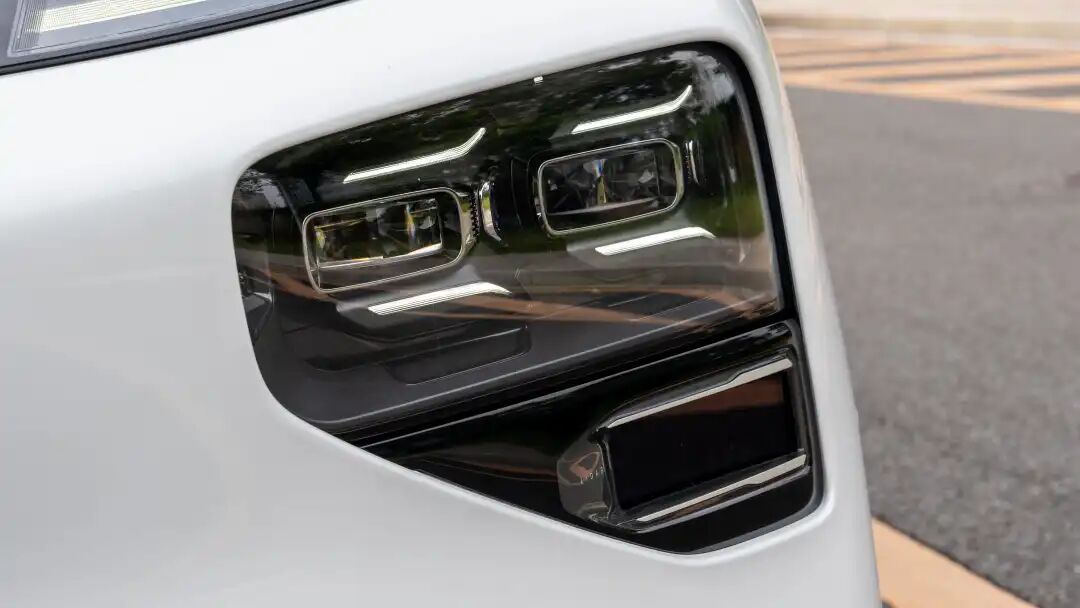在高配版车型上面,激光雷达与大灯集成在同一个区域,设计相对于理想 L9 与蔚来 ES7 等车型更为美观,且在辅助驾驶当中覆盖更多低矮的物体识别,但是一旦发生前部碰撞,可能产生不菲的维修费用。