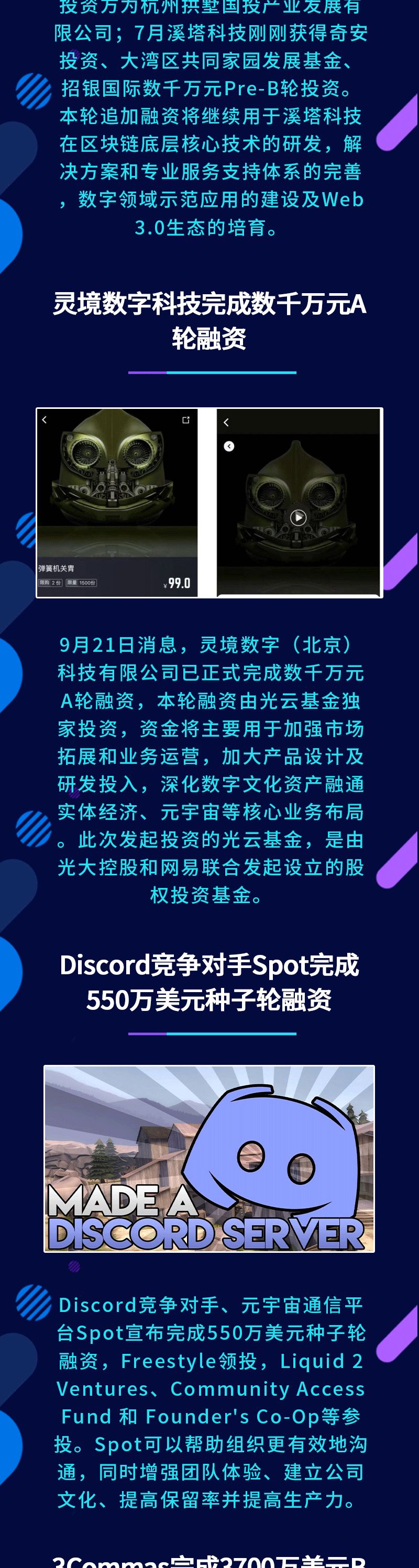 9月19日,溪塔科技宣布其已完成了数千万Pre-B追加轮融资,本次投资方为杭州拱墅国投产业发展有限公司;7月溪塔科技刚刚获得奇安投资、大湾区共同家园发展基金、招银国际数千万元Pre-B轮投资。本轮追加融资将继续用于溪塔科技在区块链底层核心技术的研发,解决方案和专业服务支持体系的完善,数字领域示范应用的建设及Web 3.0生态的培育。