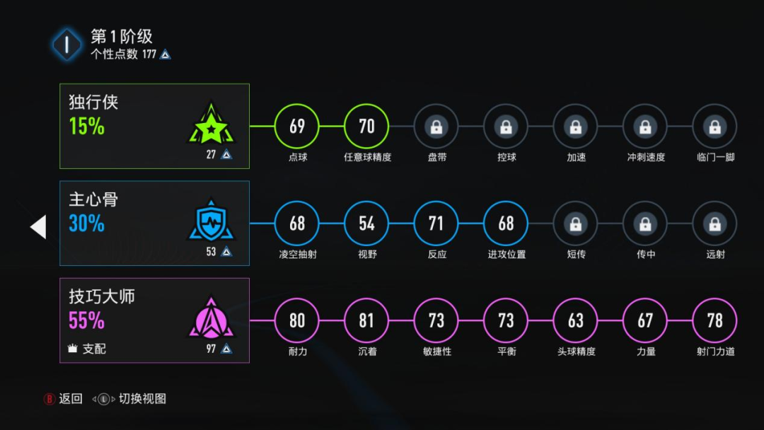 “个性原型”需要玩家在比赛之外的空闲时间里,安排自己的角色去完成各类球队活动、购物以及投资。通过这些球场外的活动,角色可以获得“特立独行者”“主心骨”和“技巧大师”三种个性点数,而不同个性将决定玩家在球场外可获得的属性加成,比如当你以获取“技巧大师”的点数为主时,球员就能获得更多与控球技巧相关的属性加成效果。