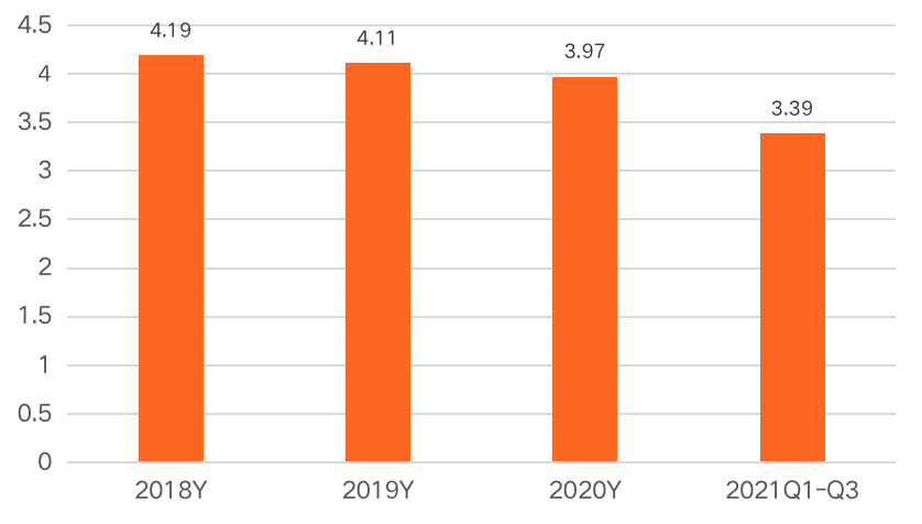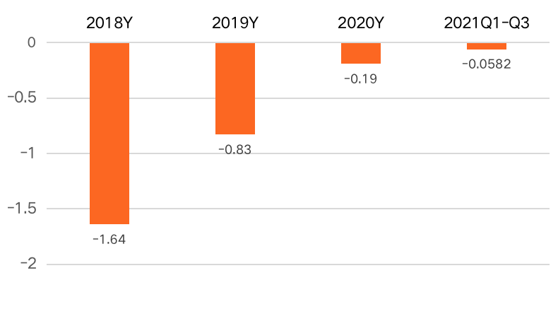 应当指出的是,信雅达扣非后归母净利润近些年一直为负(见图3),主要利润来源是其投资活动,主营业务盈利能力仍欠佳。但从整体趋势来看,信雅达主营业务亏损额持续缩减(见图4),2020年毛利润亏损额已减少到-0.19亿元,整体表现出向好的趋势。信雅达2020年营业收入相比上年同期增长了5.54%,同时主营业务成本同比下降1.93%,说明公司主营业务盈利能力有所提高。