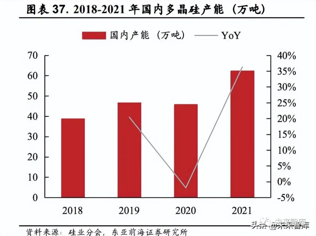 2018-2019 年——需求减少,价格下滑,扩产放缓:2018年国内出台531 光伏新政,明确降低光伏发电补贴幅度,当年光伏新增装机量同比下降 18%,多晶硅需求量受到冲击,价格一路下行至2019年末的8美元/kg 左右,硅料企业也纷纷放缓了扩产步伐;