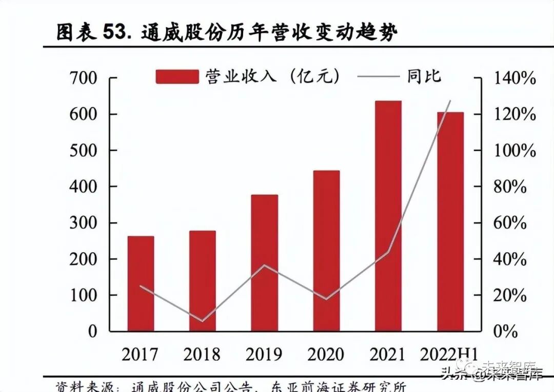 截至 2022 年 H1,公司控股股东为通威集团,持股43.85%。公司实际控制人为董事长刘汉元先生、管亚梅女士,分别持有通威集团80%、20%股份。涉及光伏行业的全资子公司分别是四川永祥、通威太阳能(合肥)、通威新能源,其中四川永祥负责多晶硅及化工业务;通威太阳能(合肥)负责电池及组件业务;通威新能源负责光伏电站业务。
