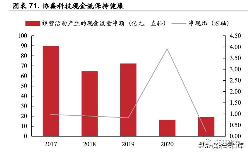 公司经营性净现金流边际改善。2017-2021 年,公司经营活动产生的现金 流 量 净 额 分 别 为
