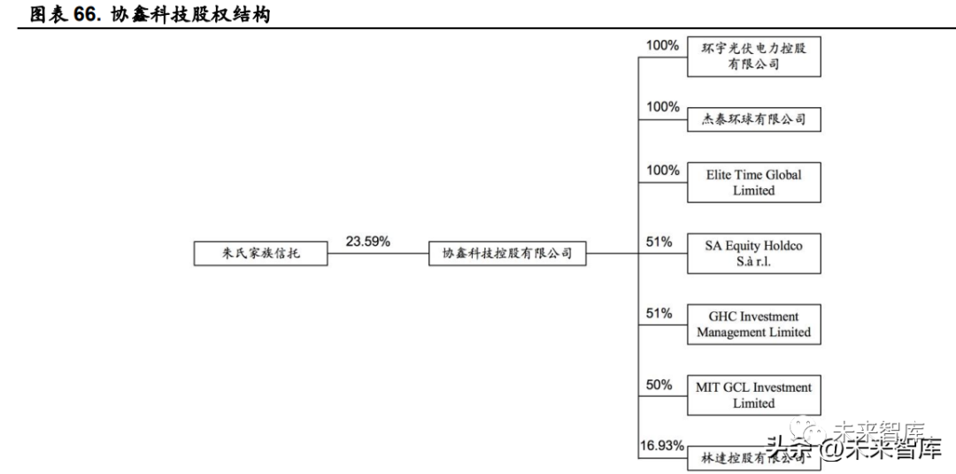 截至 2022 年 H1,公司实际控制人为协鑫集团有限公司创始人、董事长朱共山先生,朱氏家族信托持有公司 23.59%的股份。公司下设环宇光伏电力控股有限公司、杰泰环球有限公司、Elite Time Global Limited三家全资子公司,以及 SA Equity Holdco S.à r.l.、GHC Investment Management Limited、MIT GCL Investment Limited三家控股子公司。
