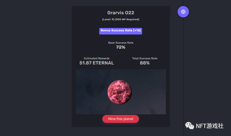 例如,假设玩家有2000Mine Power,可前往第20颗行星。这个星球有一个稳定的50%的成功率(上限),但是,如果玩家回到通常成功率为60%的第15个星球,由于MP更高,增加的奖励成功率为10% ,共达到70%的成功率。