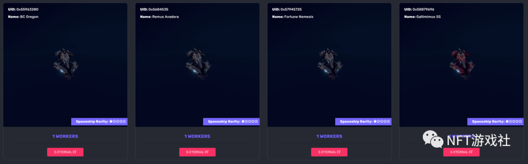 这些飞船在铸造时会获得一定程度的稀有度,这可以决定在远征中可以运送的工人数量。每个玩家的舰队最多只能拥有10艘飞船。