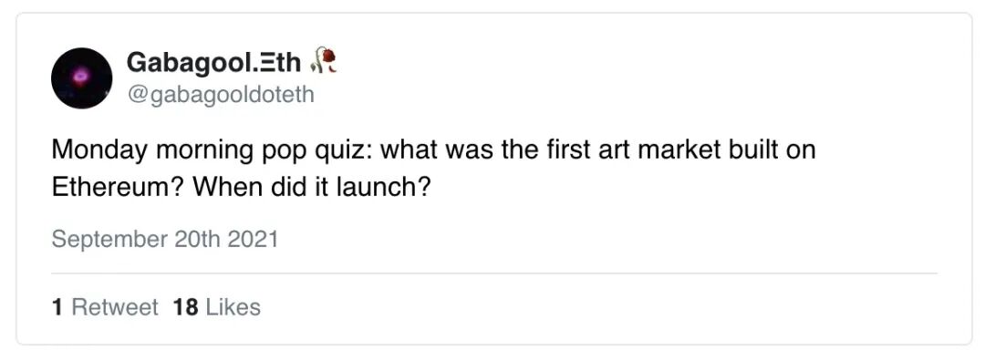如果我问你,“最古老的以太坊艺术市场是什么”,你会怎么回答?
