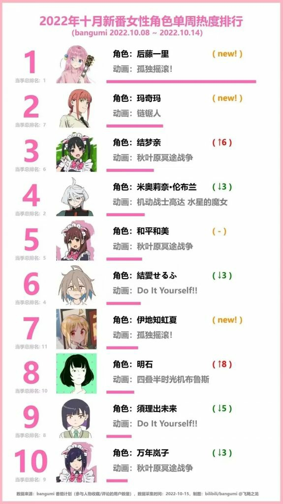 而在“最受观众欢迎的女角色”的调查中,“后藤一里”也以超大比分优势,击败了玛奇玛小姐,成为“十月新番第一女主角”——看来,那些喊着“要当玛奇玛小姐的狗”的人,并没有想象中的多。