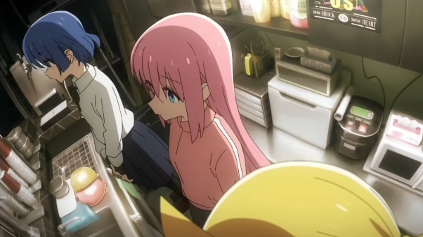 而后藤一里这名角色在每一集中的表现,也能让人从难过的地方找到治愈的力量。表面上看,她总是受困于社交恐惧而止步不前,但实际上她又总是在意外或朋友的推动中,一点点地缓解或转移着社恐给她带来的烦扰。每一集,后藤一里都能获得一点点的进步,并在惊觉只有“一点点”进步时感到苦恼。