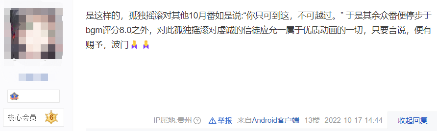 所以,称《孤独摇滚》为真正意义上的“十月霸权”,虽然其中有开玩笑的意味,但也包含着相当一部分观众对这部作品的认可。