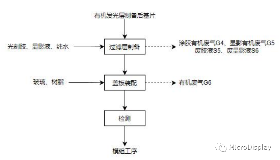 彩色过滤层制备工艺流程及产污节点图