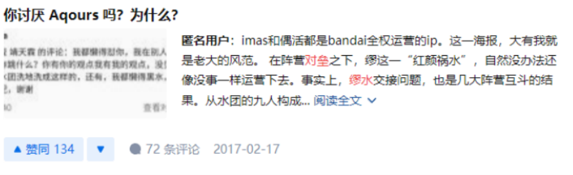 在当时,“Aqours会不会取代μ's?”类似的问题比比皆是,即使是理性讨论,也不乏踩一捧一的论调,随即引发争吵。本来和谐的圈子,陷入了混沌之中。