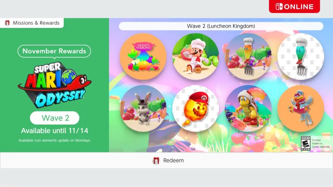 任天堂推出《超级马力欧 奥德赛》第2波白金点数对换头像,11月14日截止,点击桌面的“Nintendo Switch Online”图标即可前往兑换(需要会员)。